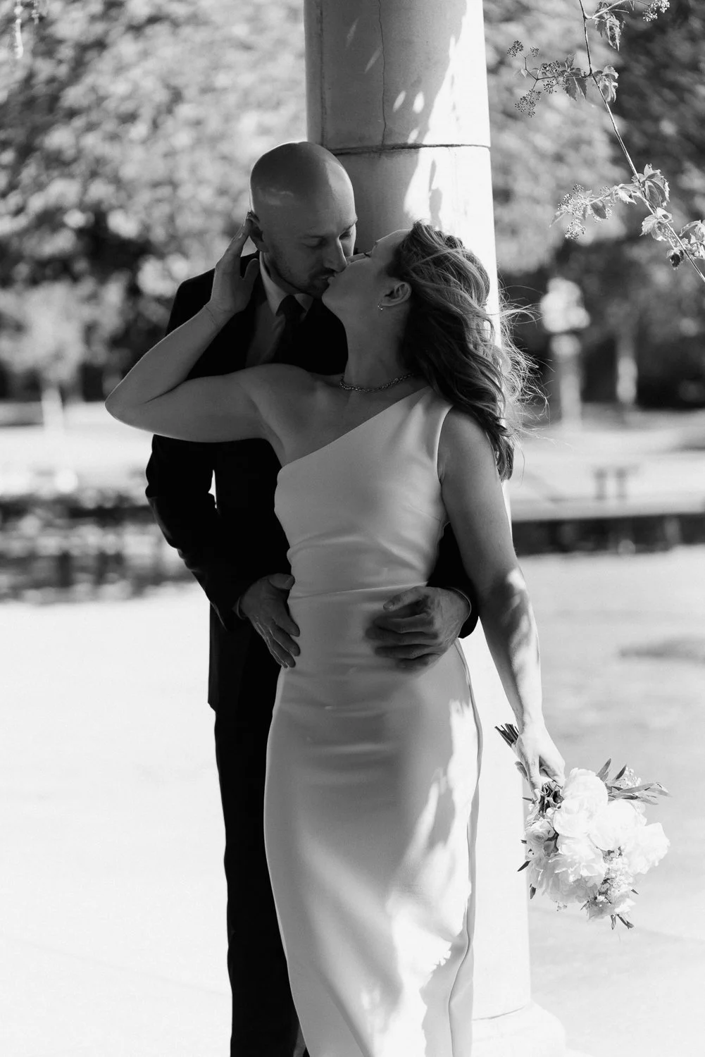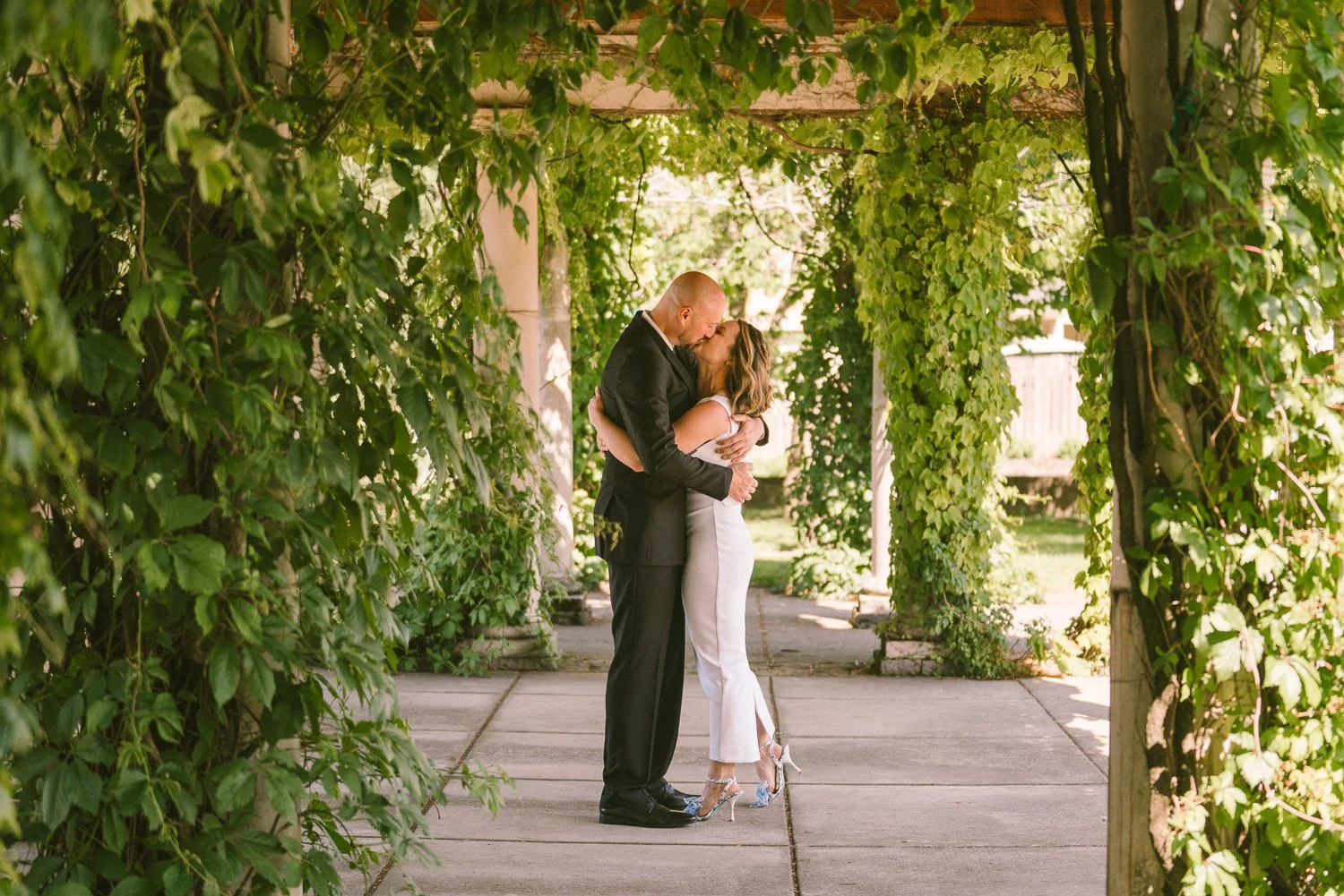 Caitlin and Ryan’s elopement at the Washington County Courthouse in Hillsboro was a beautiful blend of intimacy, sentiment, and celebration. Before gathering with friends and family, the two shared private vows beneath a tucked-away gazebo wrapped in green vines and framed by elegant concrete columns. The secluded moment gave them time to breathe together before the big moment—and was so surreal to have the entire place just to themselves.
